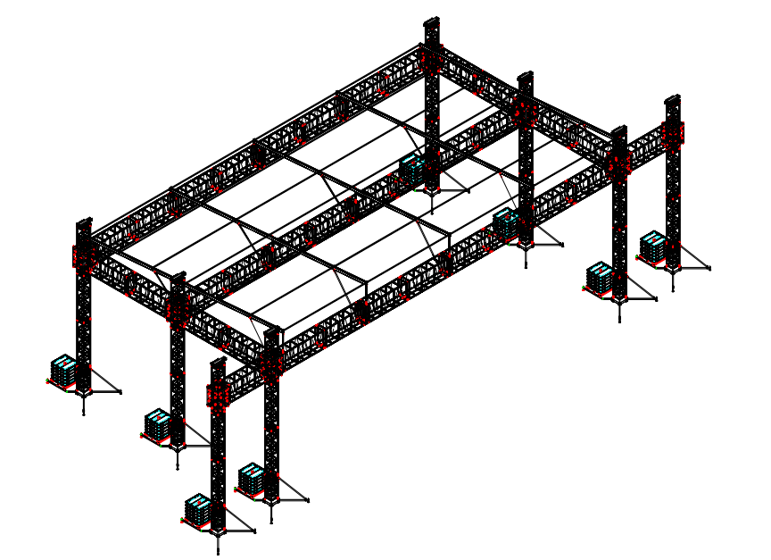 Il s'agit d'un ensemble de grandes fermes pour toit plat, composées de poteaux de 500 x 500 mm et de poutres de 650 x 1 200 mm. Ces poutres de 650 x 650 mm peuvent facilement supporter des systèmes de sonorisation linéaire, de grands écrans LED et des équipements d'éclairage. Ce système de fermes en aluminium robuste est adapté aux constructions fixes de grande envergure ou extérieures nécessitant une suspension robuste, garantissant fiabilité et durabilité pour une utilisation à long terme.
